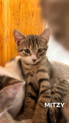 Mitzy ist ein verspieltes und fröhliches Katzenmädchen. Sie ist mit ihren Geschwistern zusammen bei Carmen und natürlich wird dort einiges angestellt. Katzentoilette kennt sie und sie frisst auch